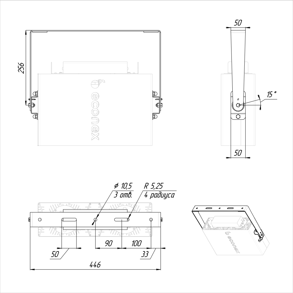 Поворотное крепление (лира) для светильников PowerX 240/360 и Basic PowerX 240/360 с шагом фиксации 15°
