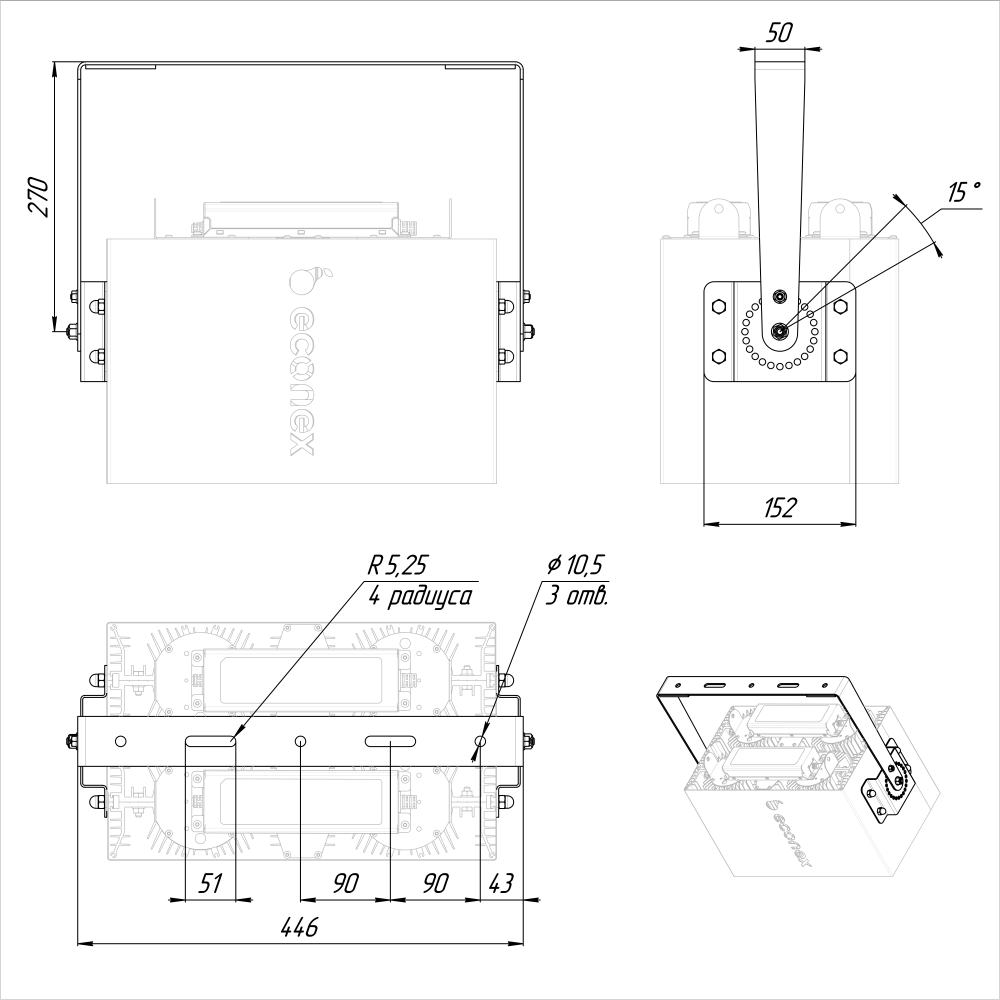 Поворотное крепление (лира) для светильников PowerX 480 и Basic PowerX 480 с шагом фиксации 15°