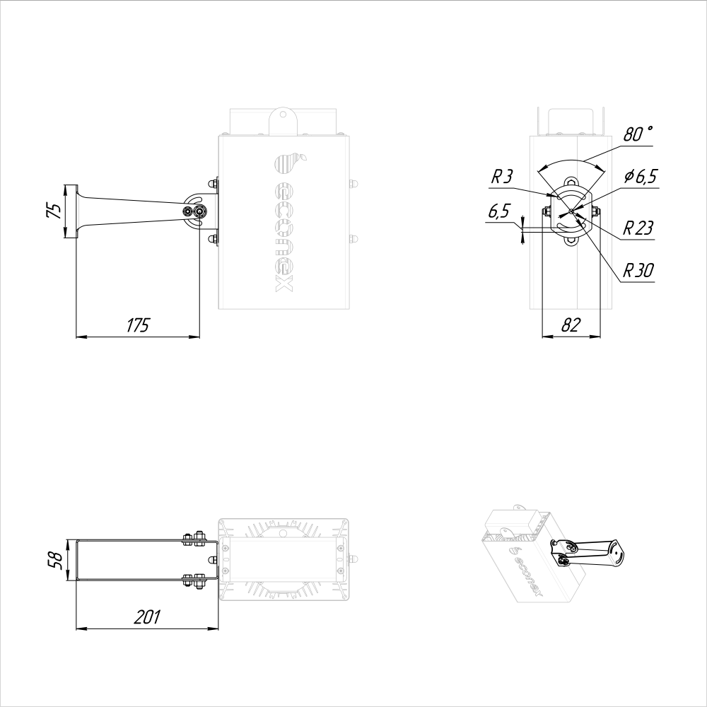 Настенно-потолочное крепление для светильника PowerX 120/240 и Basic PowerX 120/240 с регулировкой угла наклона в двух взаимно перпендикулярных плоскостях