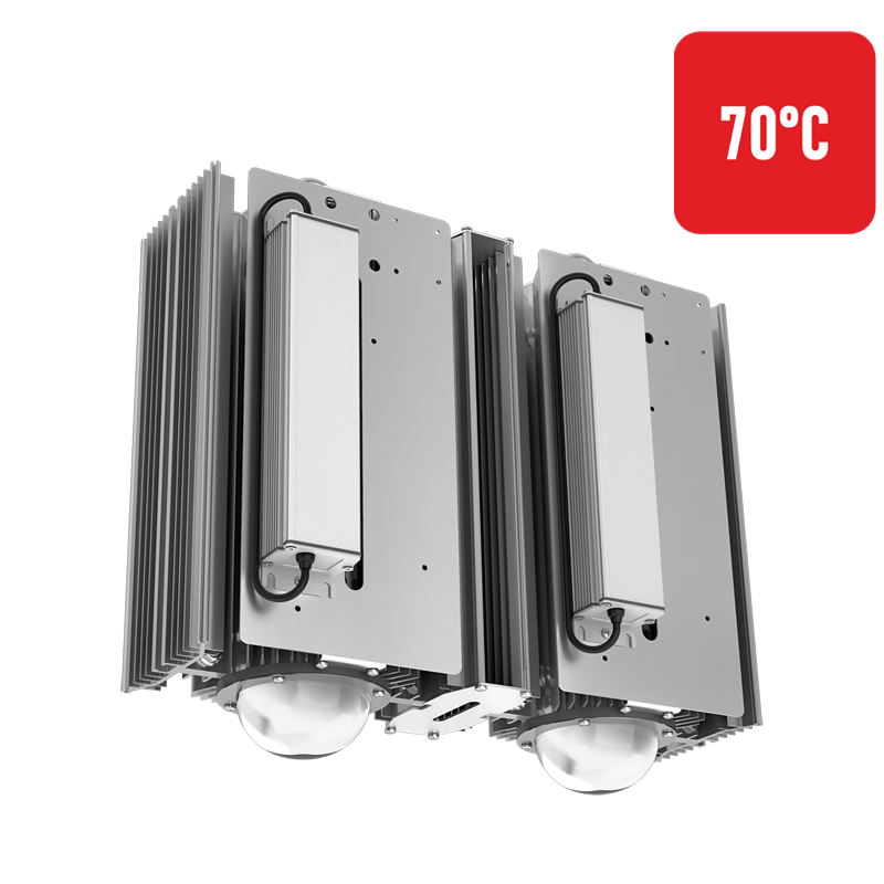Серия светильников Econex Hell 70° предназначена для освещения в горячих цехах с температурой окружающей среды до 70°. Высота установки от 10 метров. Имеют высокую эффективность, различные модификации по мощностному ряду и КСС. Диммируемые 0-10V. Не накапливают пыль и грязь, экологичны, ремонтопригодны.