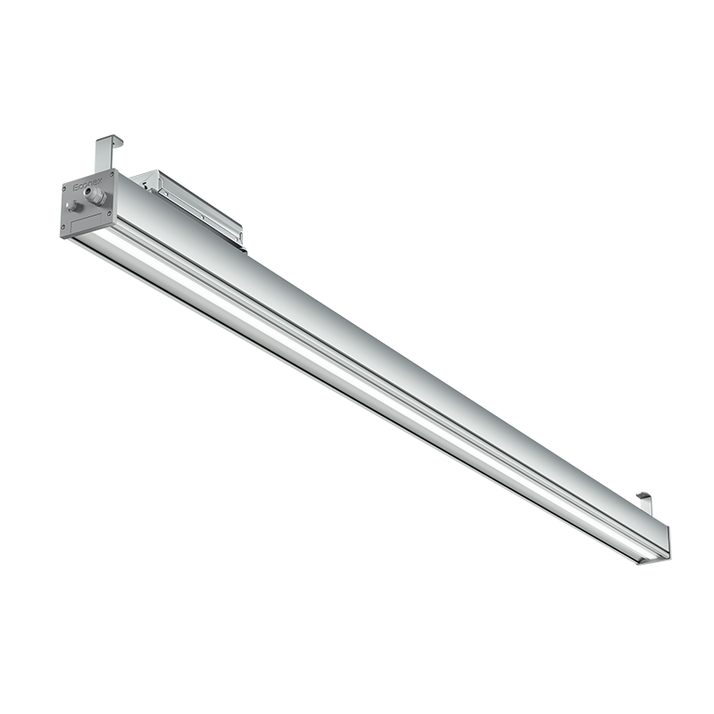 Линейный универсальный светильник серии Econex Universal SL G2 предназначен для освещения промышленных, складских и логистических комплексов. Этот компактный мощный светильник благодаря высокой эффективности подходит для помещений с высотой установки от 2 до 12 метров, а степень защиты IP65 позволяет использовать его в зонах с автоматизированными системами пожаротушения.