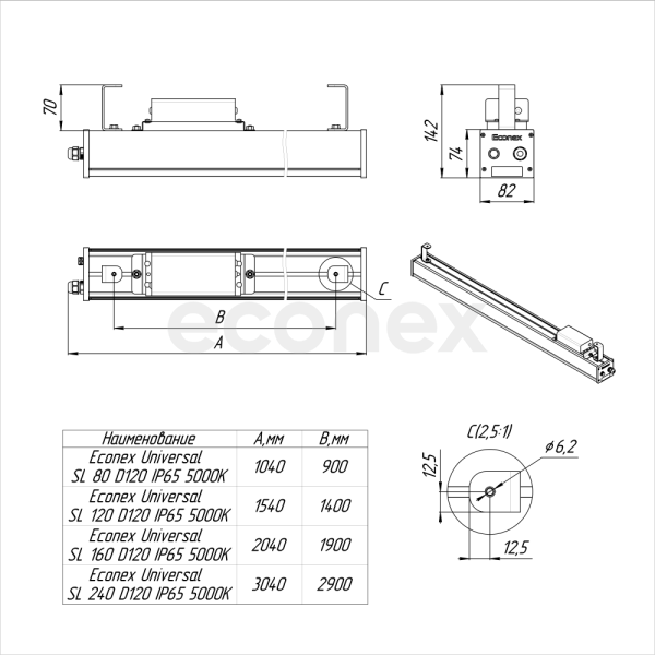 Светильник Econex Universal SL 160 D120 IP65 5000K G2