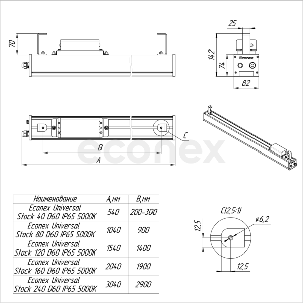Светильник Econex Universal Stock 160 D60 IP65 5000K AN