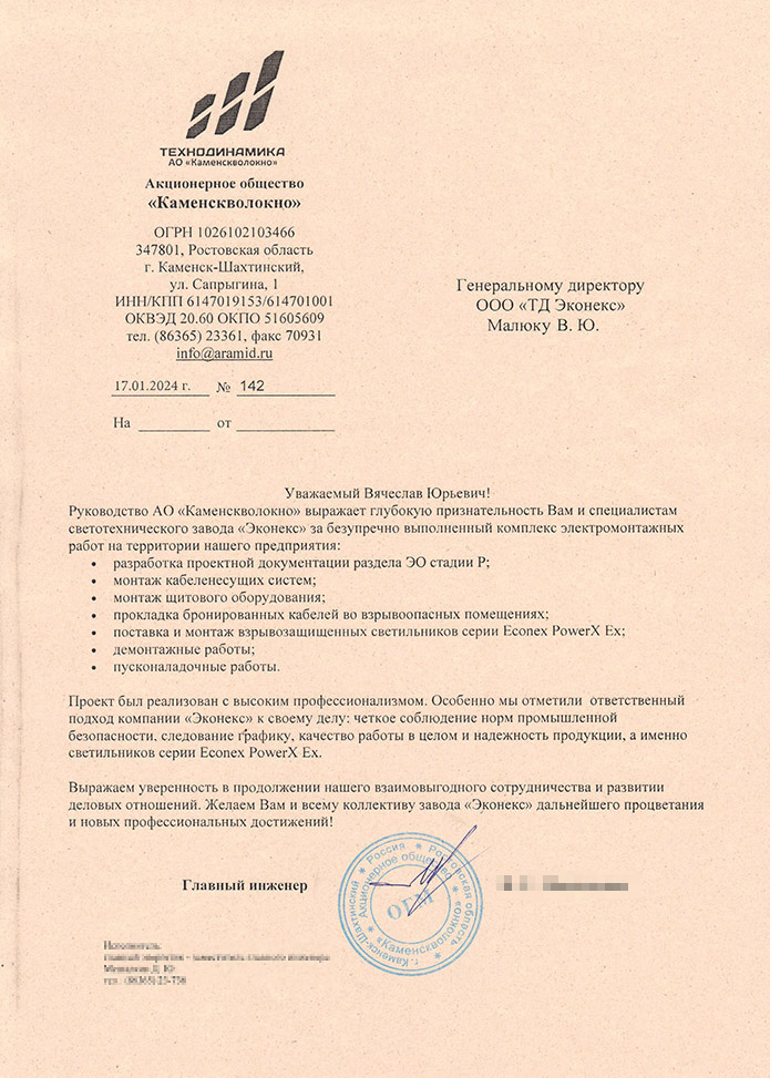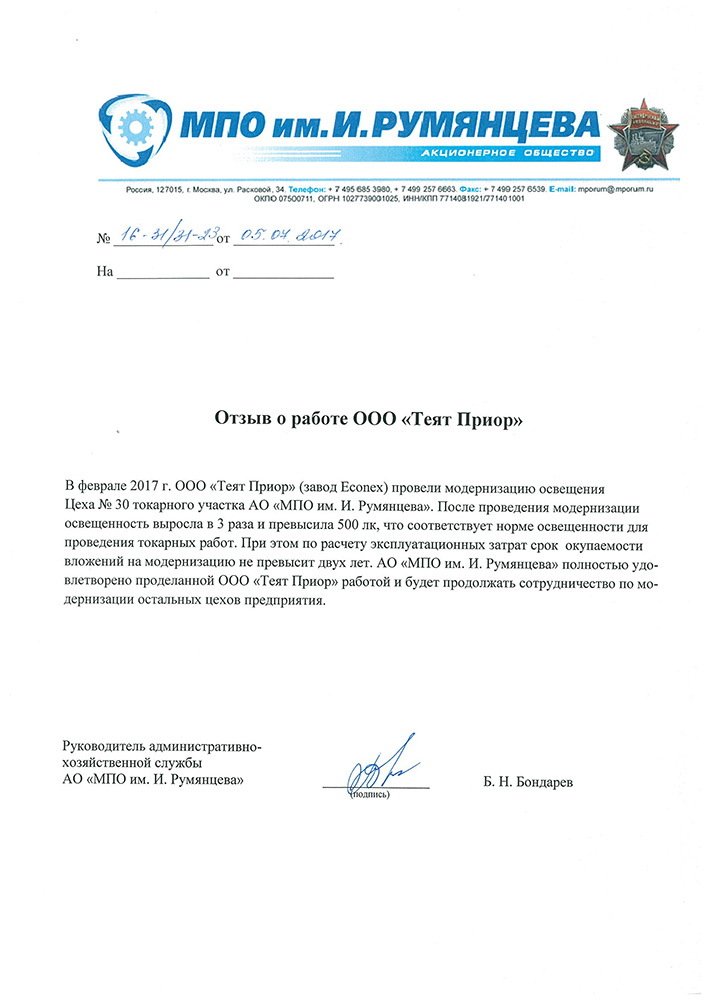 Полный комплекс работ по модернизации освещения (проектирование, производство и поставка светильников, электромонтажные и пусконаладочные работы) проведен специалистами «Эконекс» на предприятиях:
