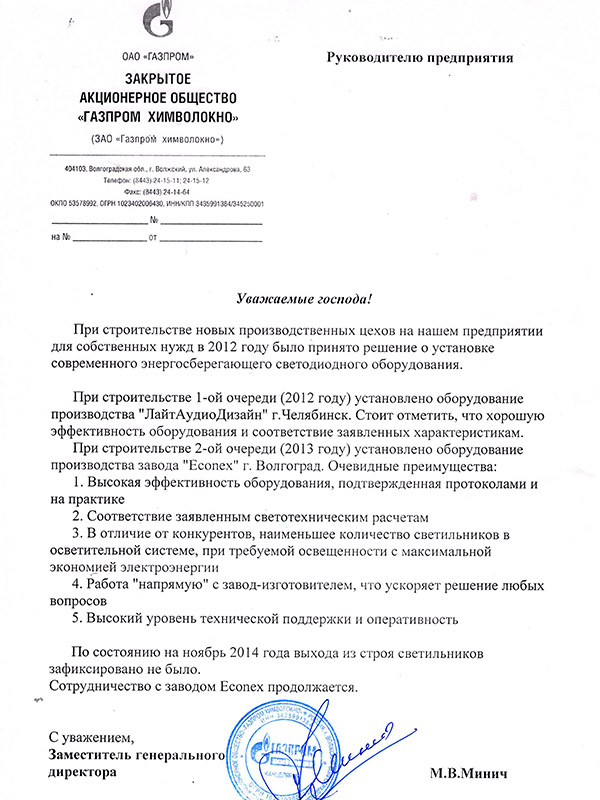 Освещение производственных помещений на «Газпром Химволокно», Волжский завод синтетического волокна