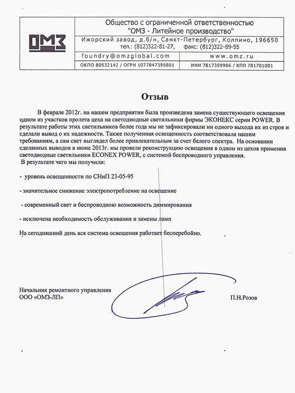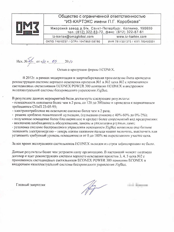 Реконструкция освещения на предприятиях ПАО «Объединенные машиностроительные заводы», группа «УралМаш-Ижора», в рамках энергосервисного контракта